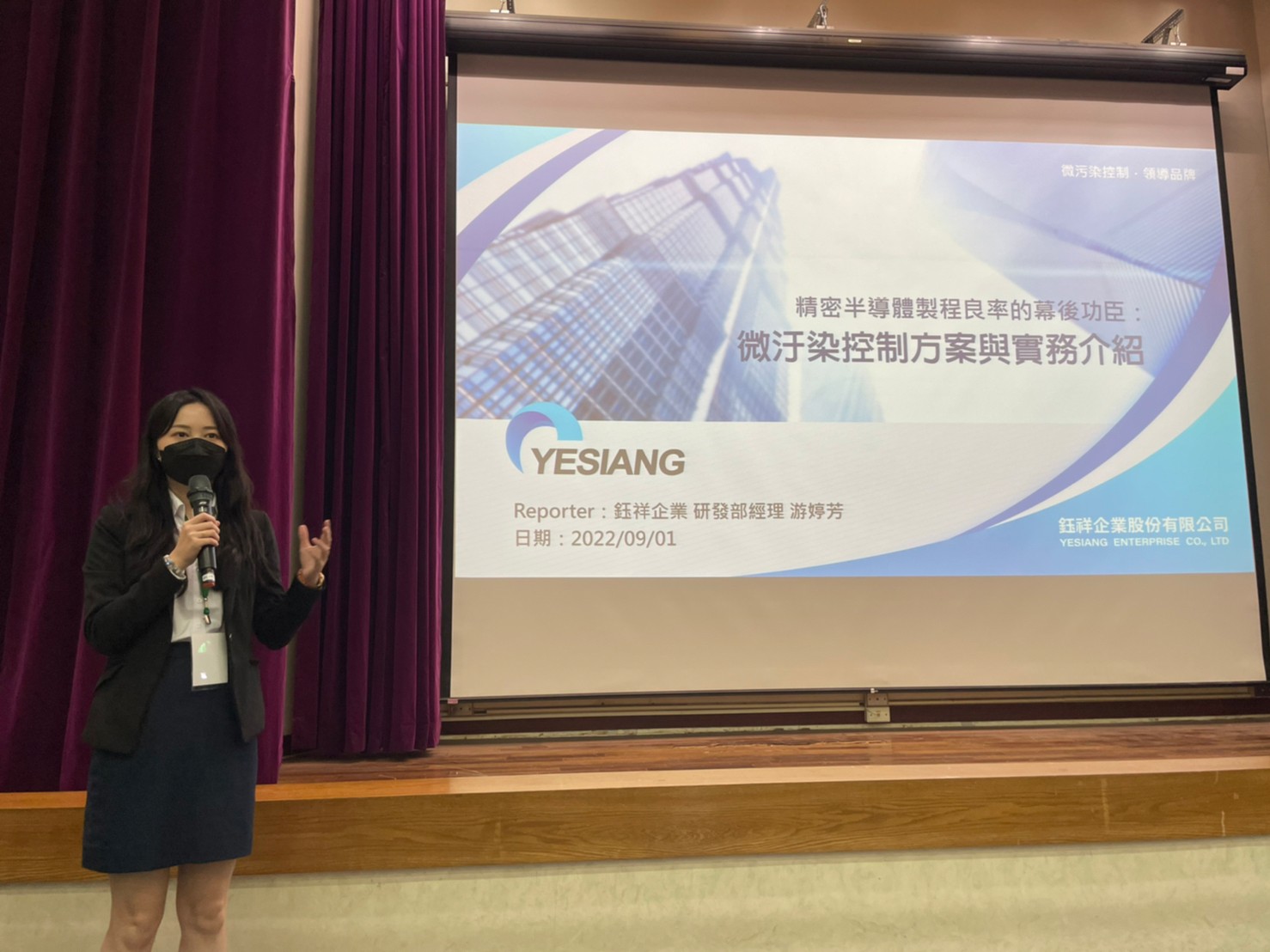 鈺祥企業股份有限公司 游婷芳 經理演講「精密半導體製程良率的幕後功臣_微汙染控制方案與實務介紹」,內容包含半導體先進製程與氣態分子汙染物(AMCs)之關係、業界常見去除AMC方法比較、過濾與吸附原理簡介及AMCs防治與控制實務分享等。