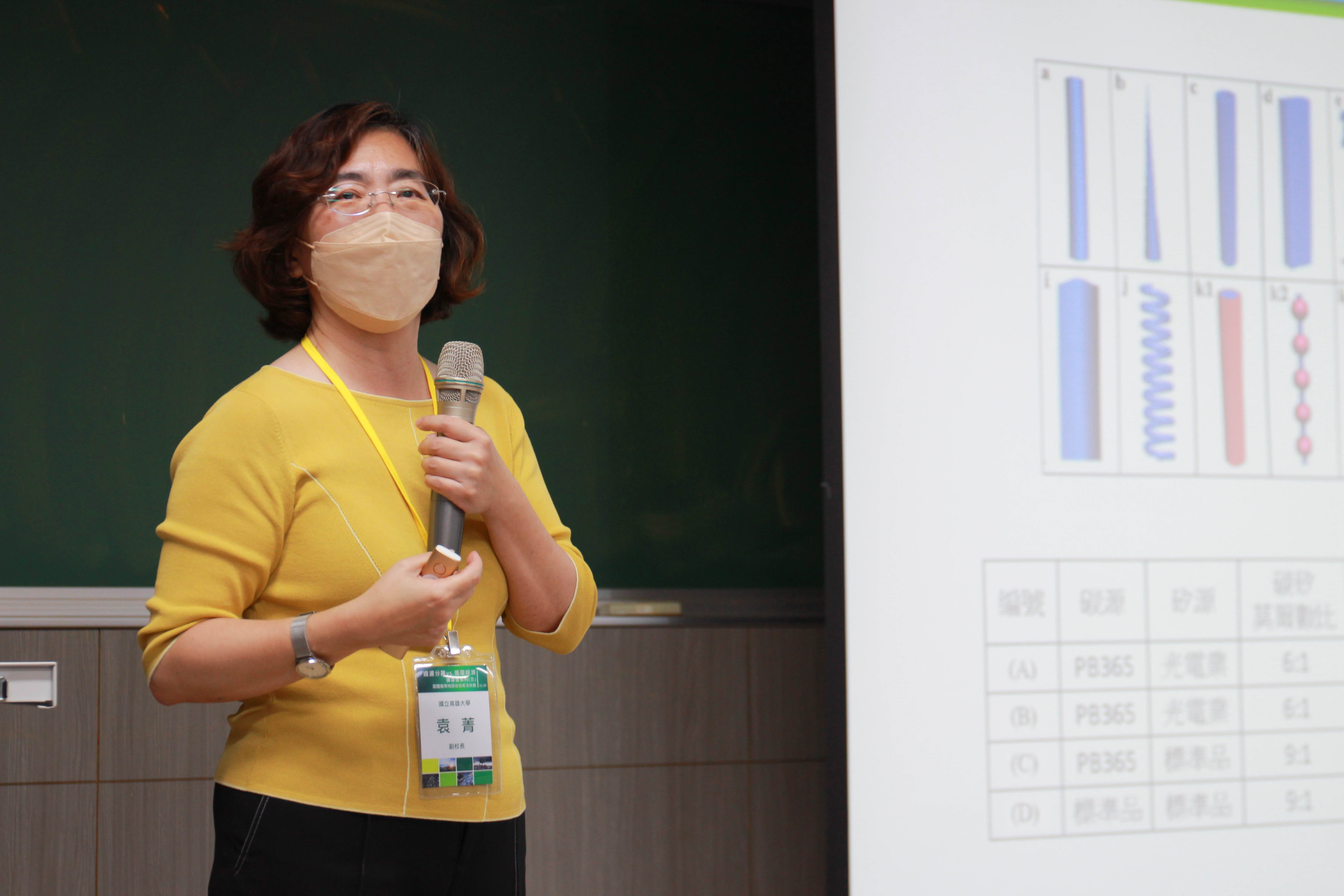 國立高雄大學 袁菁 副校長演講「以循環經濟思維研發廢輪胎再利用之高值化技術」。台灣每年產生約12萬公噸廢輪胎,目前回收處理以熱裂解技術為主,生產裂解油(38%)、碳黑(28%)、可燃氣體(19%)及回收鋼絲(15%)。為使回收產業升級永續化,以環保碳源與光電產業廢矽料利用碳熱還原技術結合機械研磨製備碳化矽,進一步添加金屬催化劑以提升碳化矽及晶鬚產量。於輪胎橡膠及環氧樹脂等產業測試中,添加少量碳化矽晶鬚均能使多項測試指標能力獲得提升為廢輪胎再生碳黑研發新出路以及可發展方向。