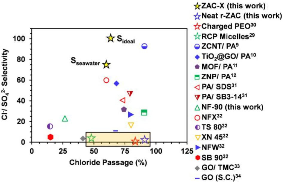 高度交聯的 ZAC 膜 具有優於文獻的 Cl-/SO42- 選擇性