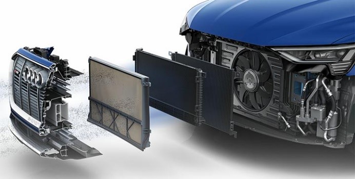 微粒過濾器整合到 e-tron 前面的散熱器上