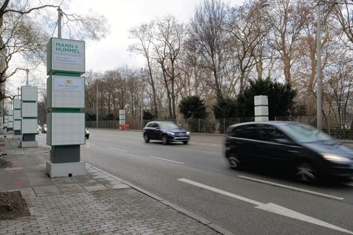 Mann+Hummel 公司的固定式 Filter Cube 系統在德國斯圖加特的某個繁忙的路口過濾顆粒狀汙染物
