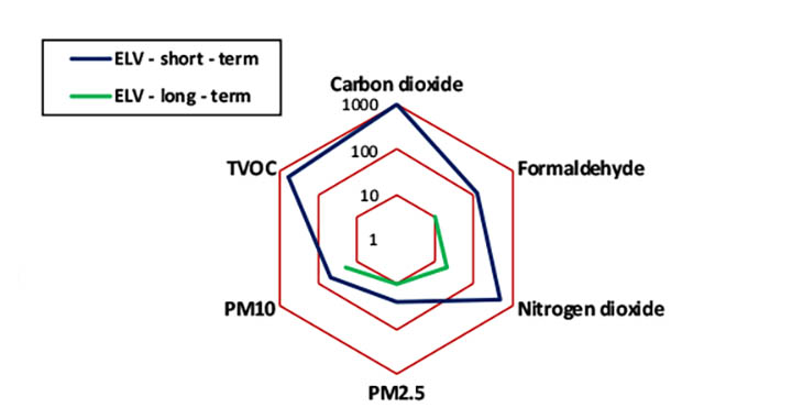 關鍵的感測器參數之一是低濃度檢測極限值,應低於特定汙染物的暴露限值 (ELV)。例如,甲醛的長期 ELV 為 9 µg/m3,PM2.5 的長期 ELV 為 10 µg/m3,感測器應該能夠測量這些濃度水平。苯是最重要的人類致癌汙染物之一,根據美國指南,其長期 ELV = 3 µg/m3,這對低成本感測器來說是一個重大挑戰,建議盡可能降低室內苯的暴露濃度。