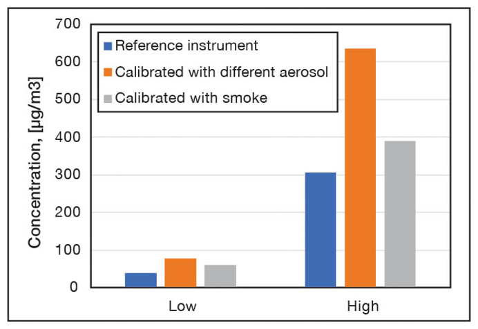 校準氣溶膠對測量的香煙煙霧濃度的影響。
