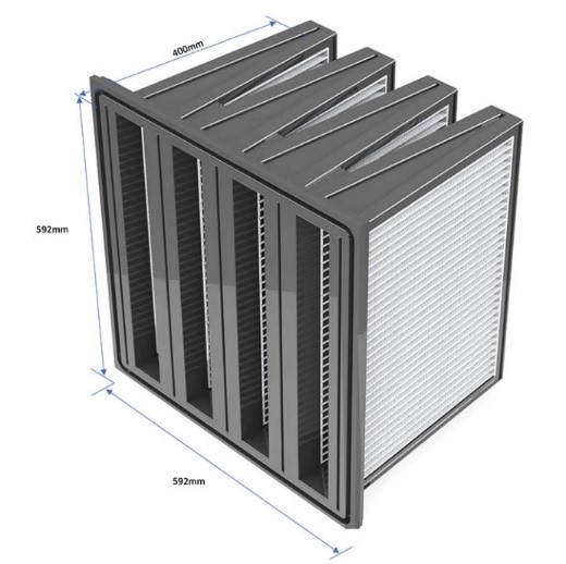 圖 8. 具有四個開口和八個打褶纖維濾材面板的 V 型過濾器。