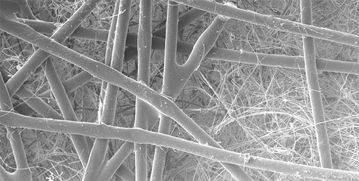 圖 2. 掃描式電子顯微鏡影像突顯纖維濾材的不均勻性。