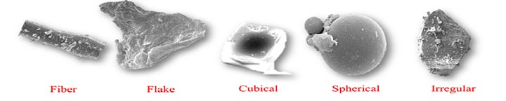 不同顆粒形狀的範例。