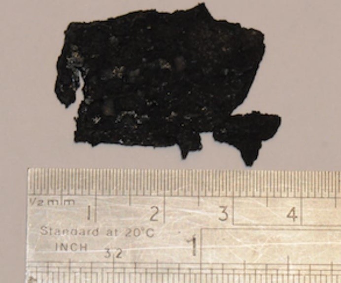 計畫停機期間從壓縮機葉片上取下的汙垢層。