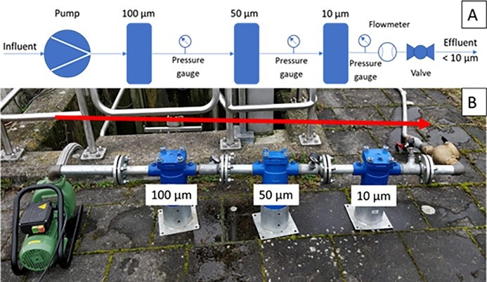 德國研究團隊Funck等人針對三座污水處理廠研究砂濾器(sand filters)對微塑膠攔截能力的效果,結果在所有污水處理廠的出水中均檢測到四種目標高分子PE、PS、PP和PET。