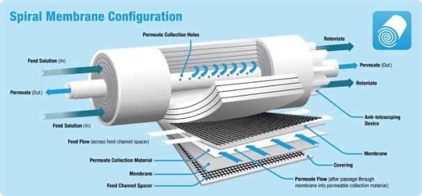 Koch公司的spiral wound RO濾芯 全球各種形式的過濾材市場每年均大幅成長。新技術的擴大使用,例如在集塵濾芯和引擎進氣過濾器中使用奈米纖維,以及在RO/UF螺旋卷繞模組中使用雙組份紗線的經編間隔織物,均有助於該應用領域市場的增長。未來須持續創新,開發與現有結構相比,具有更窄的孔徑分佈、更高的流速和/或更大的納污能力的織物和不織布過濾材,以滿足廣大過濾市場的需求。