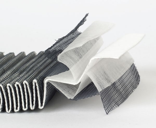 透明塑料外殼中的纏繞式濾芯 過濾材的最新技術之一是奈米纖維不織布,奈米尺寸的細纖維以1至2 g/m2的基重添加到濕法成網或紡黏不織布的表面,再製成折疊式過濾器以捕捉複合濾材上游的細顆粒,主要應用於汽車和卡車的集塵濾芯或引擎進氣過濾器中的空氣過濾。代表性的供應商如Donaldson、Clarcor (已被Parker併購)等。近年來,奈米纖維過濾材逐漸拓展到新的空氣過濾與液體過濾的產品應用。